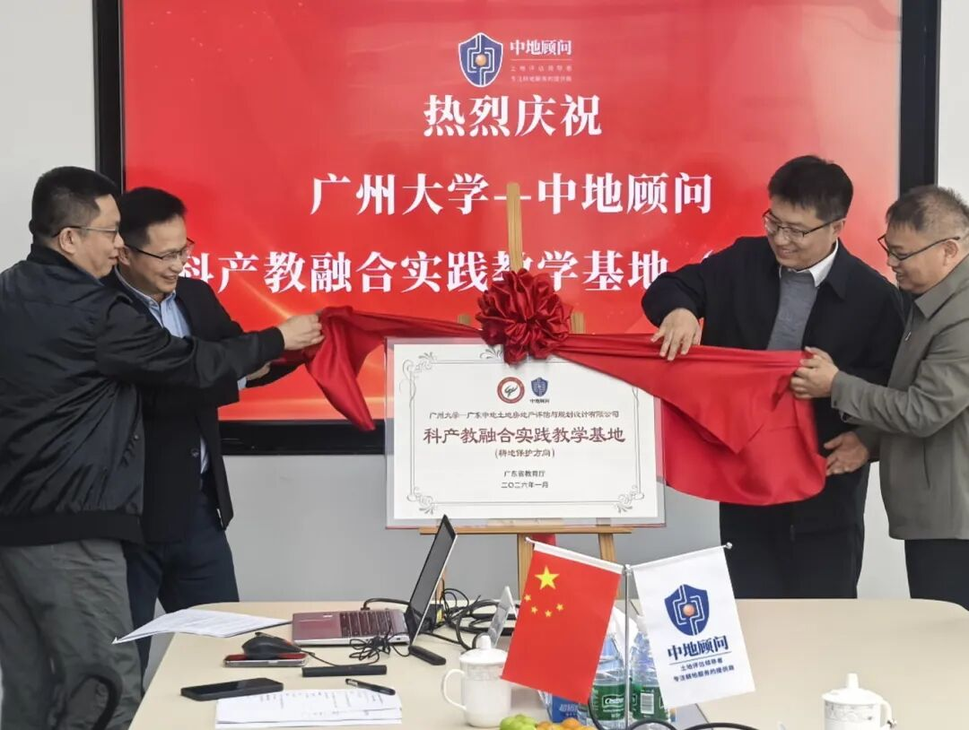 2026年1月28日,广州大学与中地顾问“耕地保护科产教融合实践教学基地(省级)”揭牌暨校企合作交流会在中地顾问隆重举行。广州大学地理科学与遥感学院副院长吴卓教授,吴大放副教授,中地顾问执行总裁谢建春,技术中心主任向栋良,人力资源总监汤志巍,耕地业态总经理肖捷出席本次会议。十年相伴,初心不改,双方代表带着对过往合作的珍视与未来发展的期许,共同见证这一意义非凡的升级时刻。
